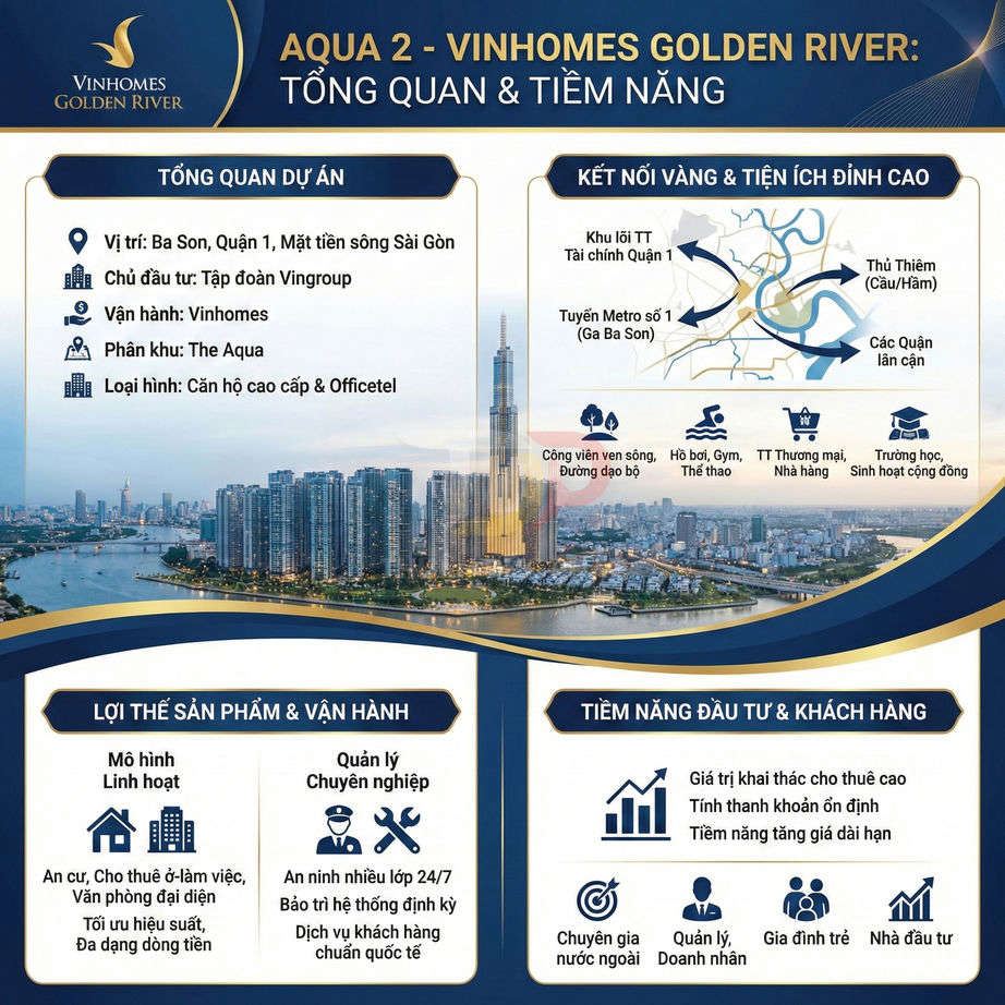 Sự kết hợp giữa vị trí ven sông, kết nối hạ tầng chiến lược (cầu Thủ Thiêm 2, tuyến Metro số 1, trục Tôn Đức Thắng – Nguyễn Hữu Cảnh – Điện Biên Phủ) và quy mô đủ lớn để tạo dựng một cộng đồng cư dân đẳng cấp giúp Vinhomes Golden River trở thành một “benchmark” khi phân tích các dự án cao cấp tại khu trung tâm TP.HCM. Không chỉ dừng lại ở yếu tố sang trọng bề mặt, dự án còn thể hiện chiều sâu trong bài toán cân bằng giữa mật độ xây dựng, chất lượng không gian công cộng và khả năng vận hành – quản lý lâu dài, vốn là những tiêu chí ngày càng được giới đầu tư chuyên nghiệp quan tâm.
